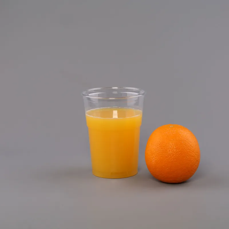 Clear PET smoothie cups with 95mm wide brim, compatible with both flat and dome lids. Available in 9oz, 12oz, 16oz, and 20oz sizes. Ideal for high-volume juice bars and smoothie shops requiring various sizing options.